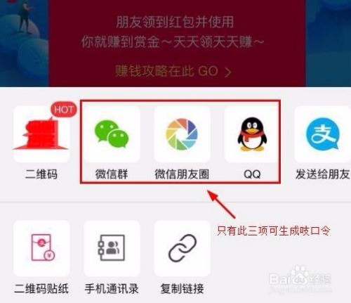 ②此时该页面的下方会弹出一个新的窗口,其中有大家常用的二维码、微信群、朋友圈等邀请形式,我们点击其中的微信群、微信朋友圈以及QQ以后系统会自动生成一个吱口令,同样的道理将其粘贴给好友就可以了...