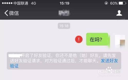 找到好友后,可以通过给ta发消息的方式,确定自己有没有被对方删除。如果可以正常发送消息,没有任何异常显示,那就说明对方没有删除你。如果你发送的消息前面有一个红色的感叹号,显示“xx开启了好友验证,你还不是他(她)好友,请先发送朋友验证请求”的话,那就可以确定是被对方删除了。