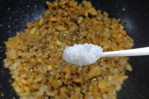 5适量砂糖调味,这道菜必须加点糖才会更好吃。