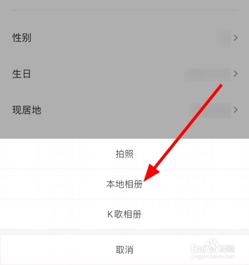 接着在弹出的窗口中,选择一种上传头像的途径,这里以本地相册为例