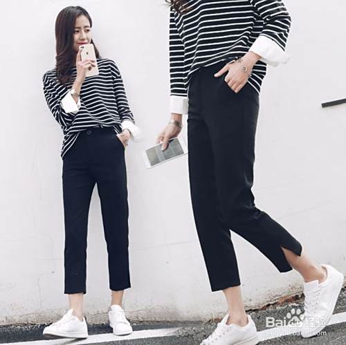 黑白条纹衫,相比大家都再熟悉不过了,无论是外穿还是打底都是妥妥的没毛病,也不用担心穿错,搭配黑色烟管裤也是非常韩范了。