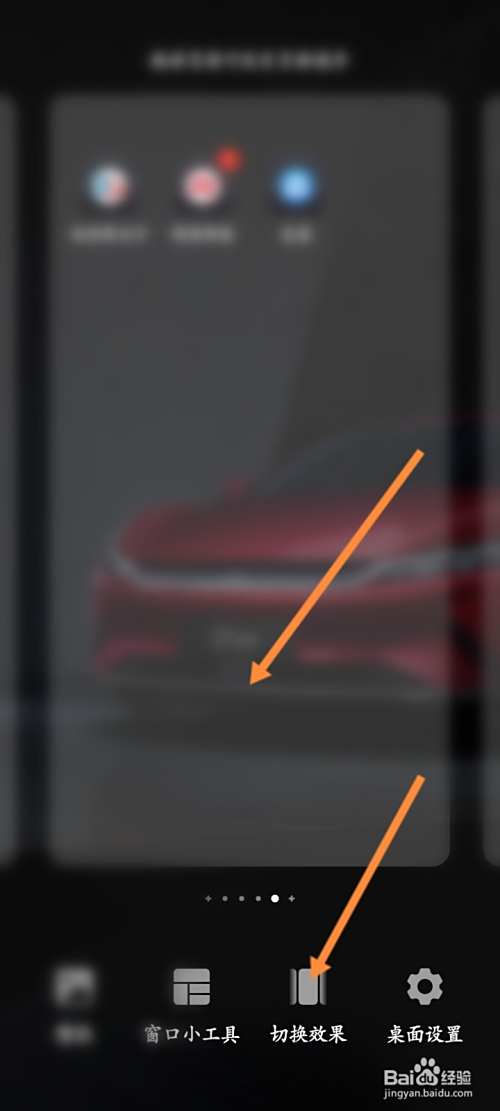 在手机桌面空白处,两手指按住屏幕往内移动,点击切换效果。