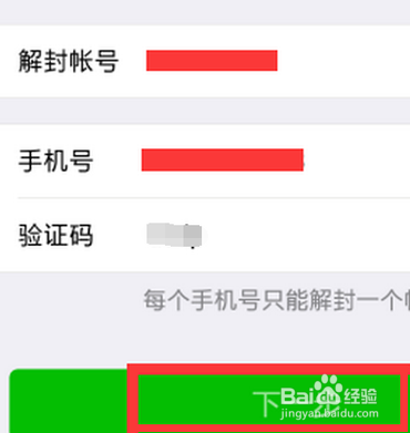 点击进入,然后我们就输入要解封的帐号,手机号码,验证码,然后点击下一步。