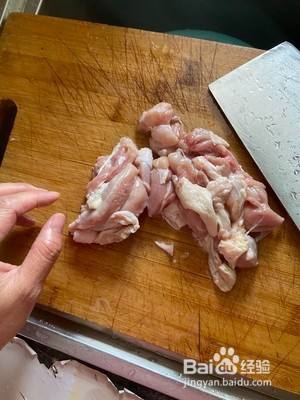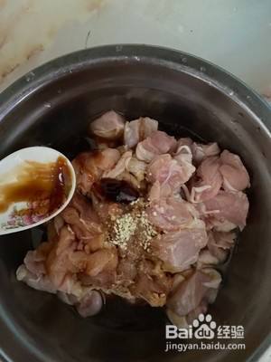倒入腌好的鸡肉,刚倒下去的时候千万不要去动,不然会煳锅。全程中小火