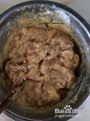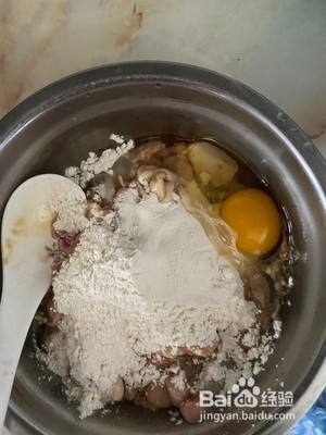 腌制好了打上一个鸡蛋、加上适量面粉搅拌均匀~