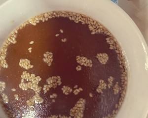 调酱汁:在碗里放入半碗清水,倒入半勺白糖、1勺醋,1勺料酒,2勺生抽、两勺豆瓣酱、1勺淀粉(可不加)适量白芝麻搅拌均匀。