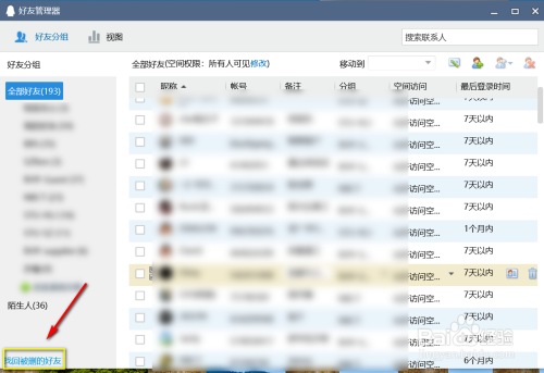 世上还有后悔药,点击左下角的回复删除的好友,如下图所示