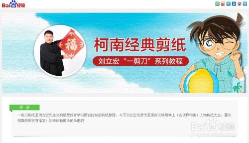 http://jingyan.baidu.com/z/llh-kn/index.html?qq-pf-to=pcqq.c2c (连接进入:刘立宏剪纸教程--柯南专题)