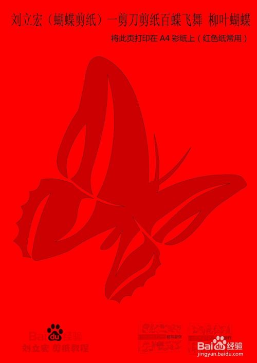 先将刘立宏(蝴蝶剪纸)一剪刀剪纸百蝶飞舞 050柳叶蝴蝶 刘立宏(蝴蝶剪纸)一剪刀剪纸教程打印在A4的彩色纸上(红色彩纸最为常用)