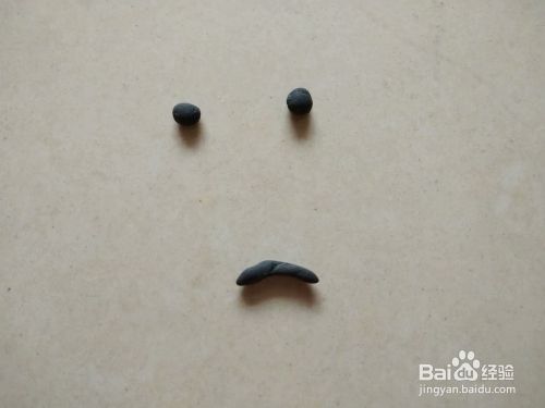 第四步,用黑色橡皮泥搓两个小圆球当向日葵的眼睛,搓一个小细条当它的嘴巴,都粘在粉色圆盘上