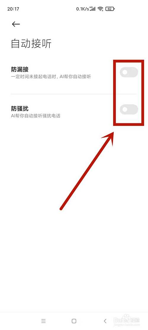 找到防漏接防骚扰后的按钮。