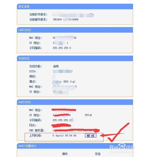 返回首页设置,点击查看运行状态。如下图中WAN口状态正常连接会显示上网时间,和断开的提示,就正面连接网络了。显示连接的 没有IP的地址的,证明没有连接成功。检查账号密码在从新尝试。