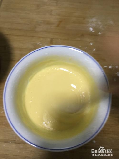 锅中放油,油温大概在180度左右,(锅底开始均匀冒小气泡)转中小火。如果掌握不准,可以拿搅面糊的筷子沾一点面糊滴入,面糊快速浮起就是可以转中小火的时间。