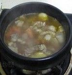 把排骨放入砂锅,加料酒、水、葱段、生姜片,用小火焖40分钟,加盐和苦瓜再炖15分钟,最后加入鸡精和猪油调味即可