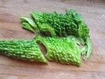 苦瓜去瓤并把里面苦籽扒掉洗干净用做备用,