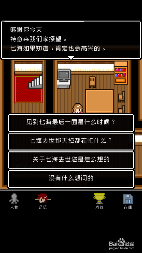 主角醒来,发现事件依旧是八月14日,来到七海的家与其家人对话,在于父亲对话后决定去村子正中央的派出所调查。