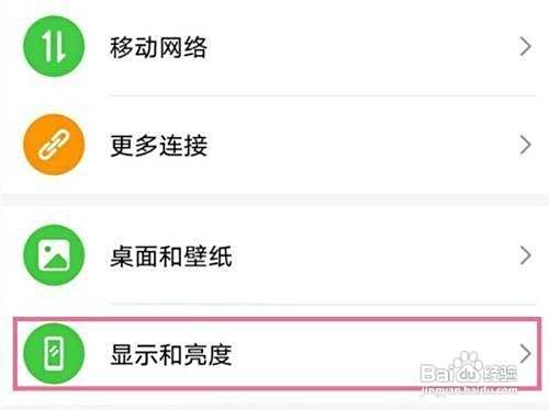 第一步、在手机设置中点击【显示和亮度】。