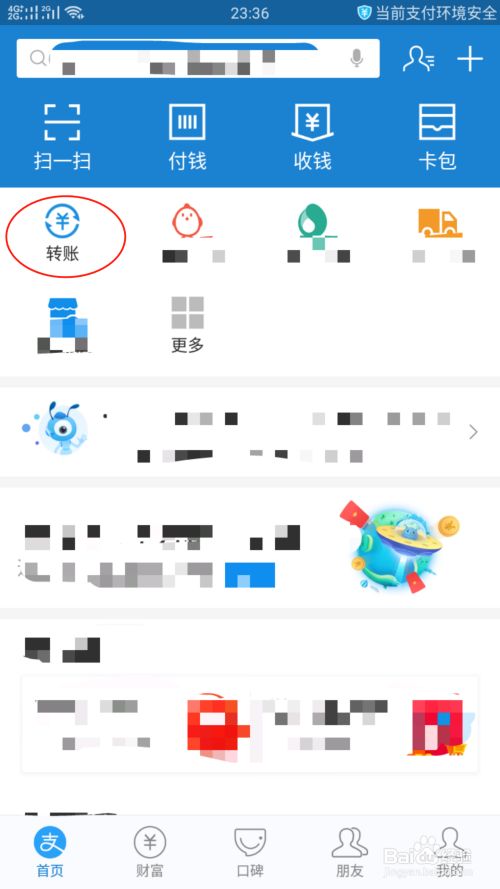 打开软件,在软件的首页中,找到并点击“转账”模块,如下图所示。