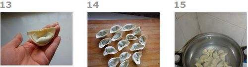 1313将两端的两个角用力捏紧避免煮的时候开裂露馅。即制作完成一个耳朵饺子。