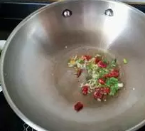起炒锅,放葱姜干辣椒爆香。