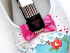 5、用E-6000胶水把蝴蝶结粘在鞋子上。