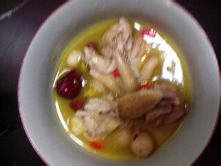 放入莲子,还有两块姜片,加水。水量不要太多,没过鸡肉再多出来一些就可以了。开大火煮,30分钟后转小火,再炖15分钟,放入洗净的红枣,枸杞,再炖10分钟关火,一锅营养美味的鸡汤就OK啦~
