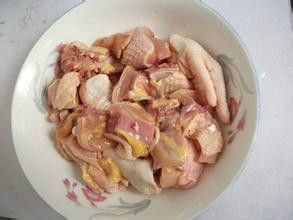 鸡肉洗净血水,剁成块。为了防止鸡汤太过油腻,我们需要去掉部分肥厚的脂肪。注意:鸡腿,鸡翅和鸡爪完整地剁下来,鸡爪去处理干净。
