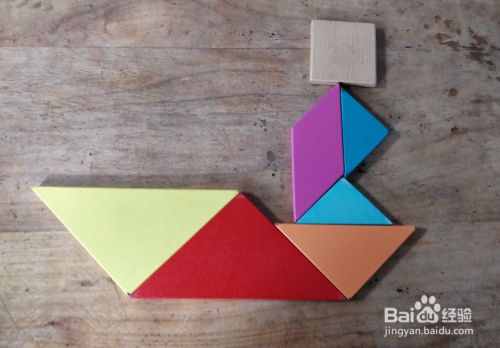 放上蓝色三角形,直角向上,左上摆上平行四边形挨着,如图。