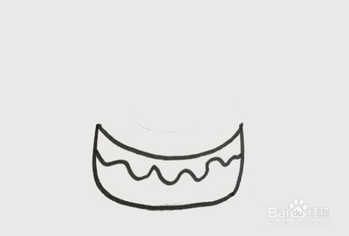 先画出蛋糕的底部,形状类似一个半圆,用用波浪线围着形状画出花纹。