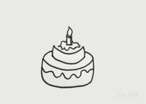 再画出第二层蛋糕上面的花纹。一个蛋糕的形状就画出来了。