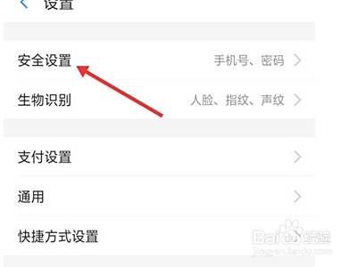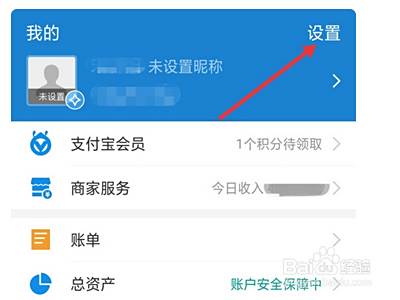 然后在支付宝的首页上面有一个设置,我们打开设置,点进去里面的安全设置。