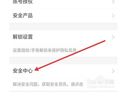 我们已经点进去支付宝的安全设置的界面,然后,再次点击安全中心,这样我们就可以进行异常的解除了。