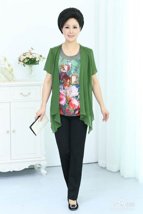 比较花俏的服装搭配上素色的,纯净的单色服装,可以减少过分的刺眼,让服装的喧嚣获得一种宁静。中老年服装最好以贵气和成熟为主,表现出一种端庄、娴熟的情感为主题,稍微添加一点的活力元素才显的青春,有风采。