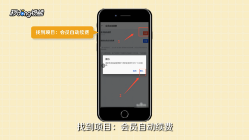 点击会员自动续费后的“关闭”按钮,在弹出的提示框中,点击“确认”。