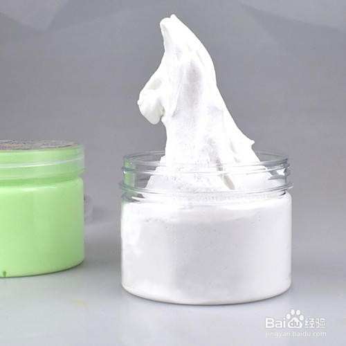 之后我们需要在容器内加入洗衣液,加洗衣液的时候要少量多次的加,每加一次就要搅和几下,然后再搅拌,一直到成型。