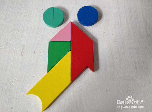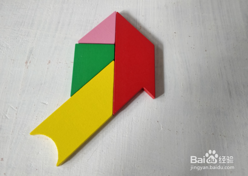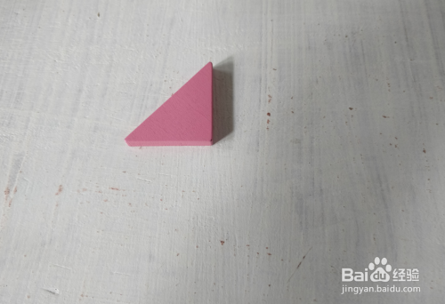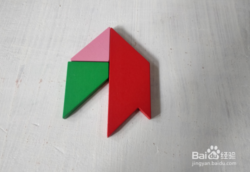 接着在三角形的右侧,放上红色形状挨着,上端一齐,如图。