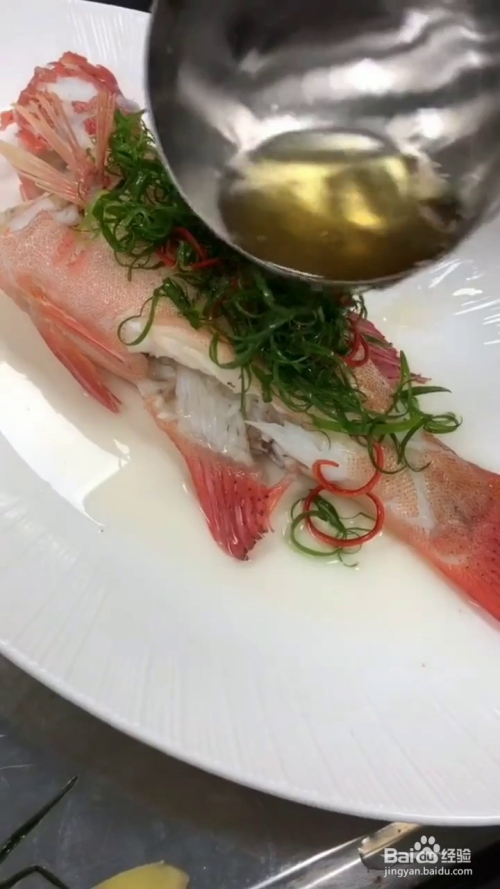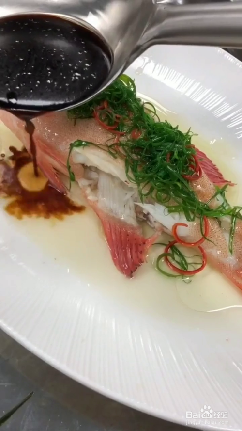 再放入葱丝和红椒丝,烧热油浇在上面,再淋上蒸鱼豉油,即可开吃啦