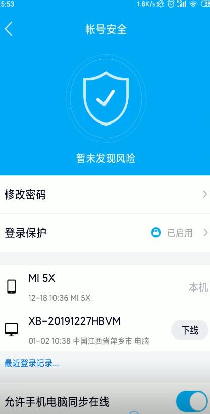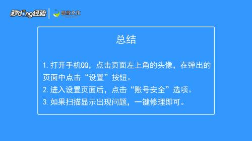 点击“账号安全”选项,进入后应用就会自动检测QQ账号安全风险以及相应的问题。