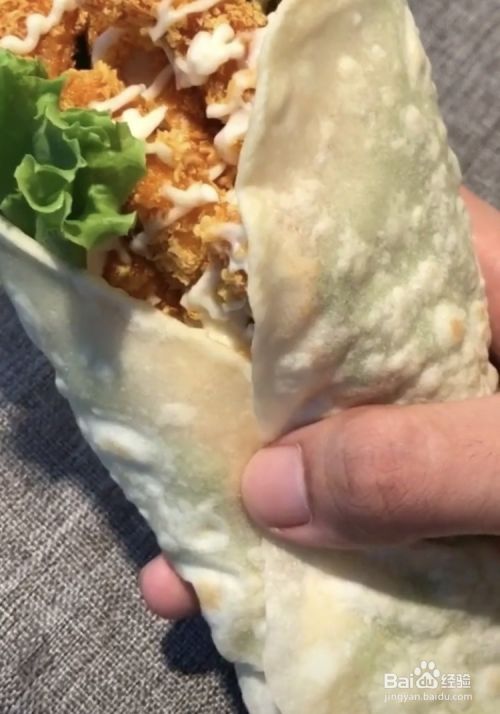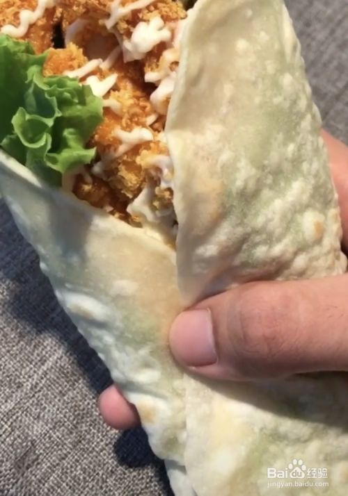 然后将鸡肉,生菜,西红柿,沙拉酱,准备好的饼卷在一起就可以了。