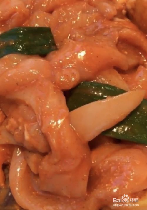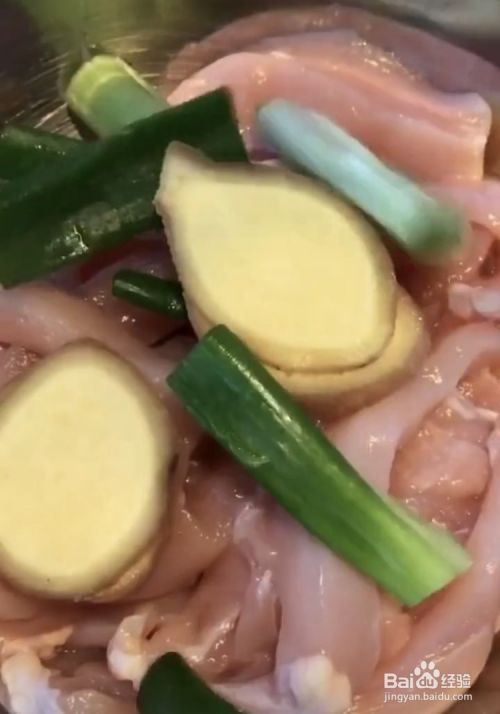 在准备好榨好的鸡肉条,加入各种调料腌制半个小时。
