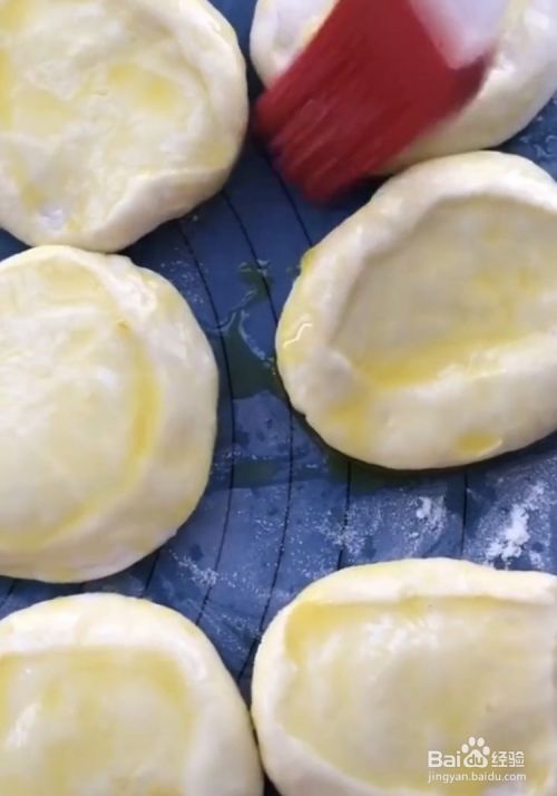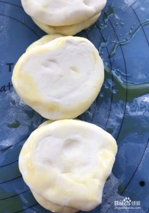 将小团上面,刷上一层油,将两个面团合在一起,擀成薄片饼。