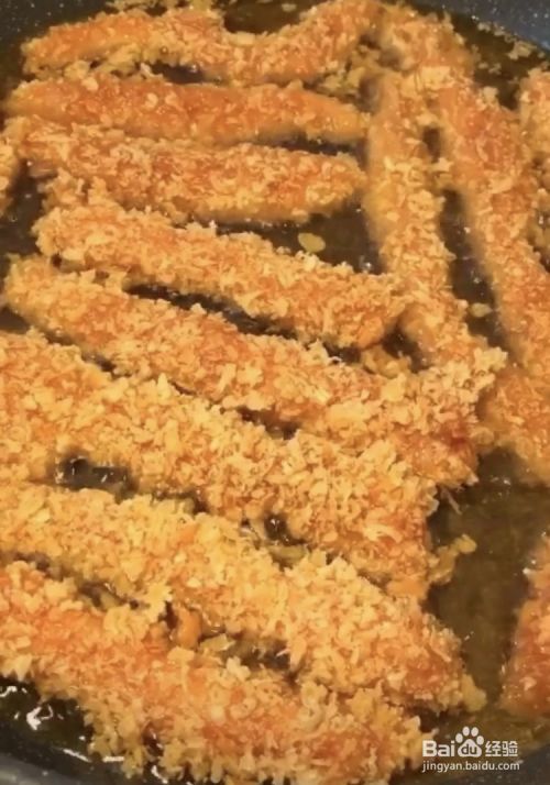 锅中烧油,加入鸡肉条进去,炸至金黄松脆后捞出。