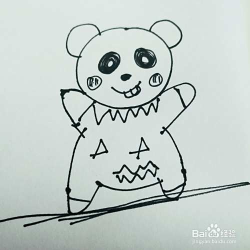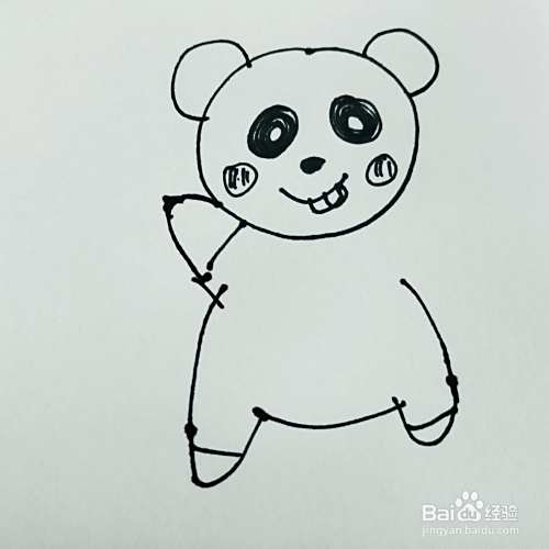 第四步,我们来画卡通小熊的身体轮廓,以及双腿,还有一只手。