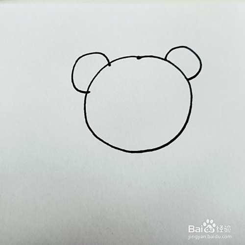 第一步,我们来画卡通小熊的头部轮廓,以及头上的两只耳朵。