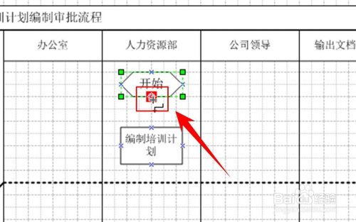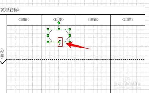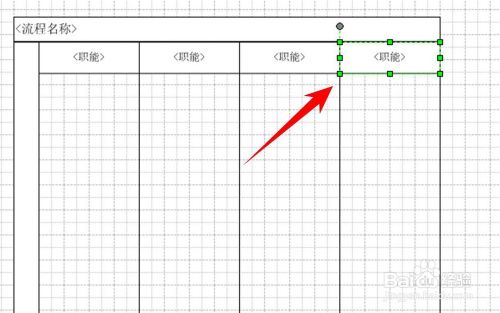 在流程图模板中点击职能带区最上方,待被选中图形四周变成绿色(如图所示)时,点击Delete键就可以实现职能带区的减少。