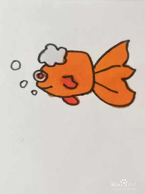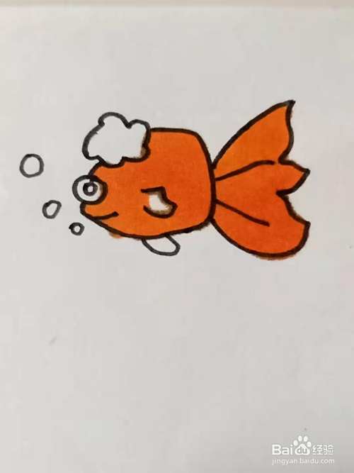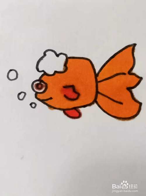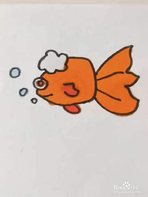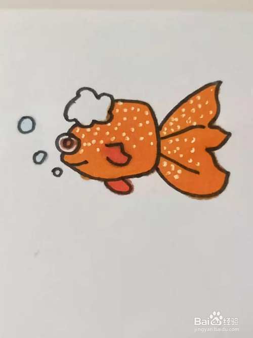 最后,用白色的高光笔给小金鱼做装饰,这样小金鱼就画好了。