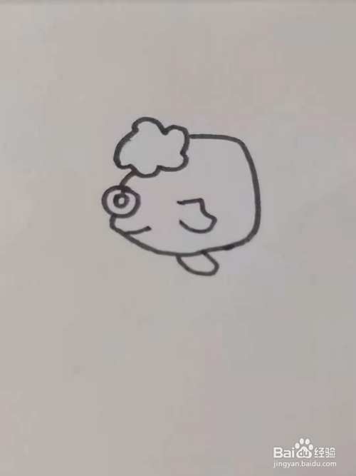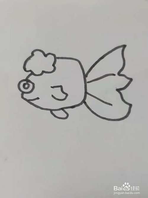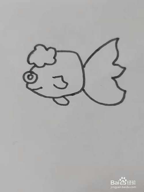 再接着,在圆形的右边画出小金鱼的尾巴。
