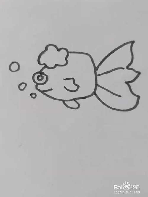 之后,在小金鱼的左边画三个圆形的泡泡。