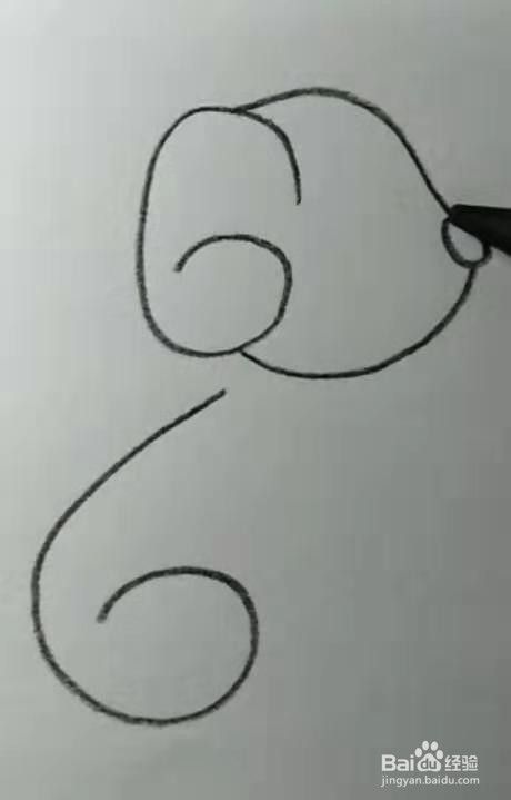然后把上面的“6”如下图连起来,再画个小圆形。见下图
