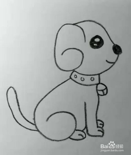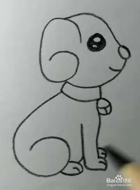 画出狗狗的尾巴。再把项圈细画一下就可以了。见下图